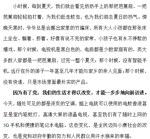 在本次活动中,同学们围绕小康社会、改革开放、脱贫攻坚、抗疫斗争、初心与使命等主题,结合自身感悟,从命运轨迹、思想状态、经济文化、生活环境等多个角度阐述了“我”的改变,深深地体现了“我”的家国情怀与对人民日益美好生活的满足感。