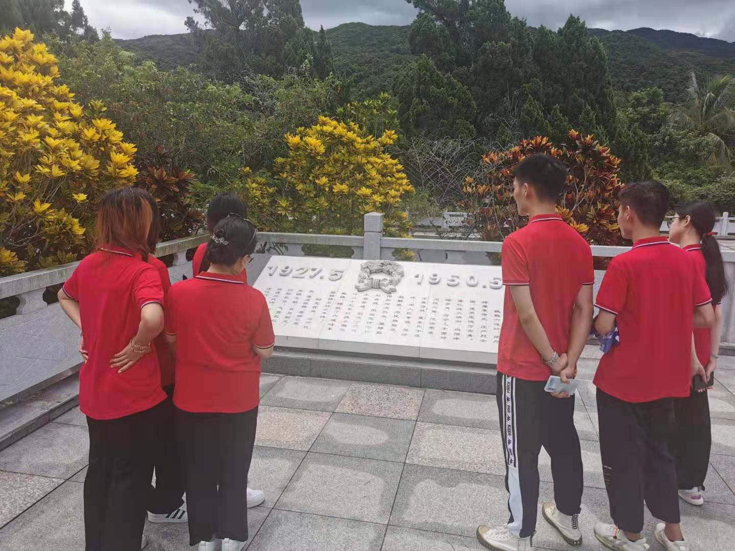 园中建有一座宏伟的革命烈士名录墙,墙上镌刻着海南革命战争中牺牲的1861名琼崖烈士名字,党员代表表示英名墙上的1861个烈士姓名会永远留存在我们的心中,人民英雄永垂不朽!同时党员代表在《红旗不倒》的烈士雕像群下合影留念,感受那二十三年红旗不倒的伟大精神与抗战中军民团结一心的殷殷情谊。
