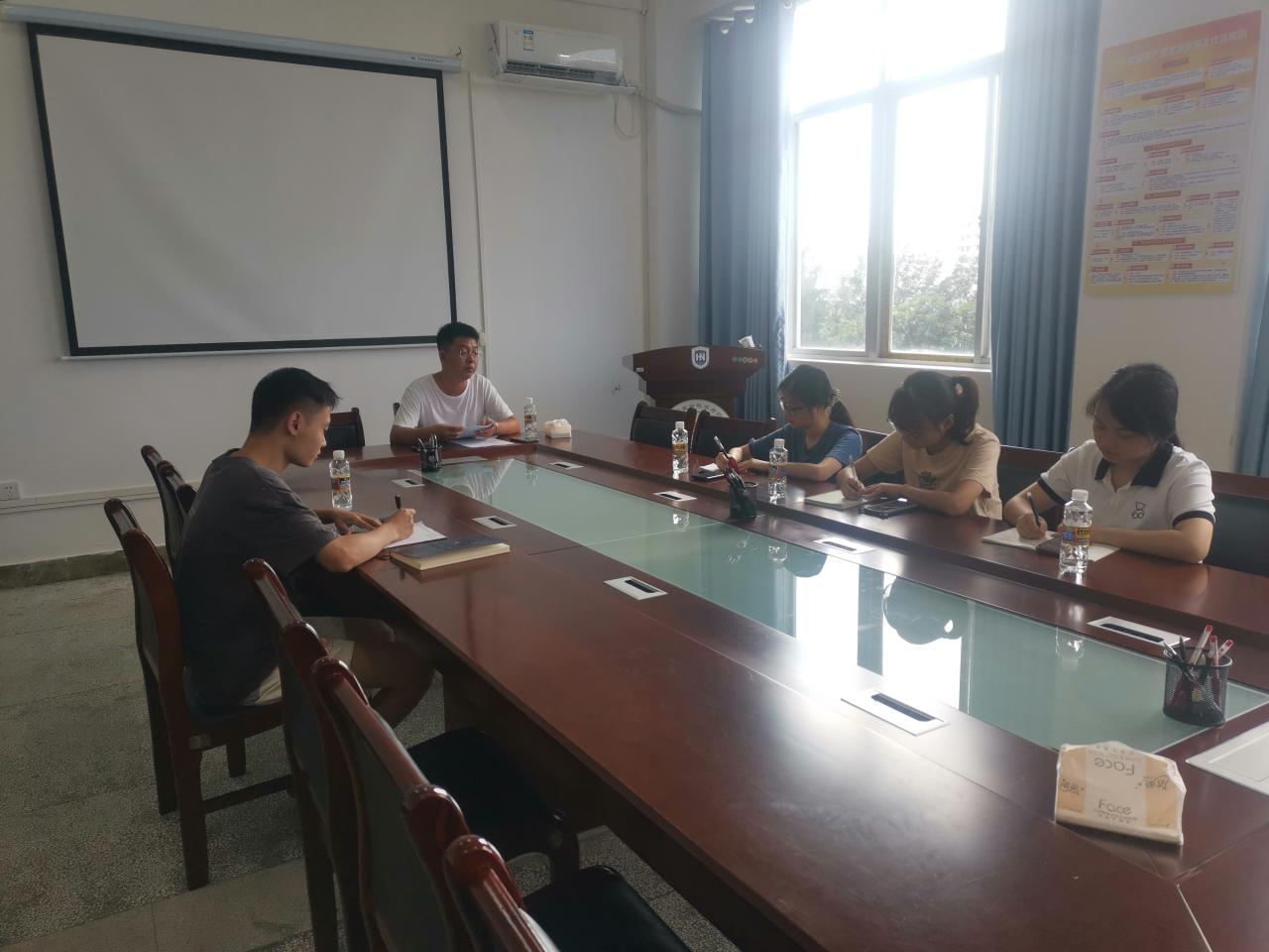 608会议室召开2021年8月支委会。会议由党支部书记谢天宇老师主持,全体支委参会。
